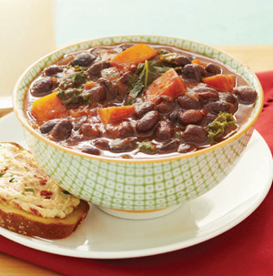 Saturday: Black Bean Soup with Sweet Potatoes and Kale.