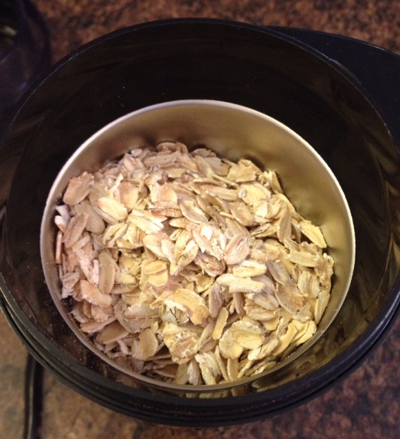 If you don’t have a coffee grinder or food processor, you can simply put the rolled oats into a sock (or other fabric satchel) and put it under the running bath water.