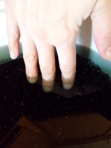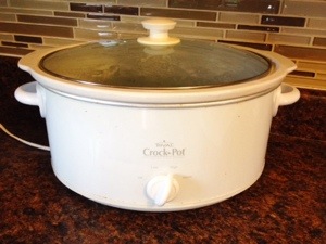 Place beans in a crock-pot and cover with water so it is about 1.5 inches above the beans. (I use the “finger method to measure). Your fingers should be touching the beans and the water will be about half way between your first and second knuckle.