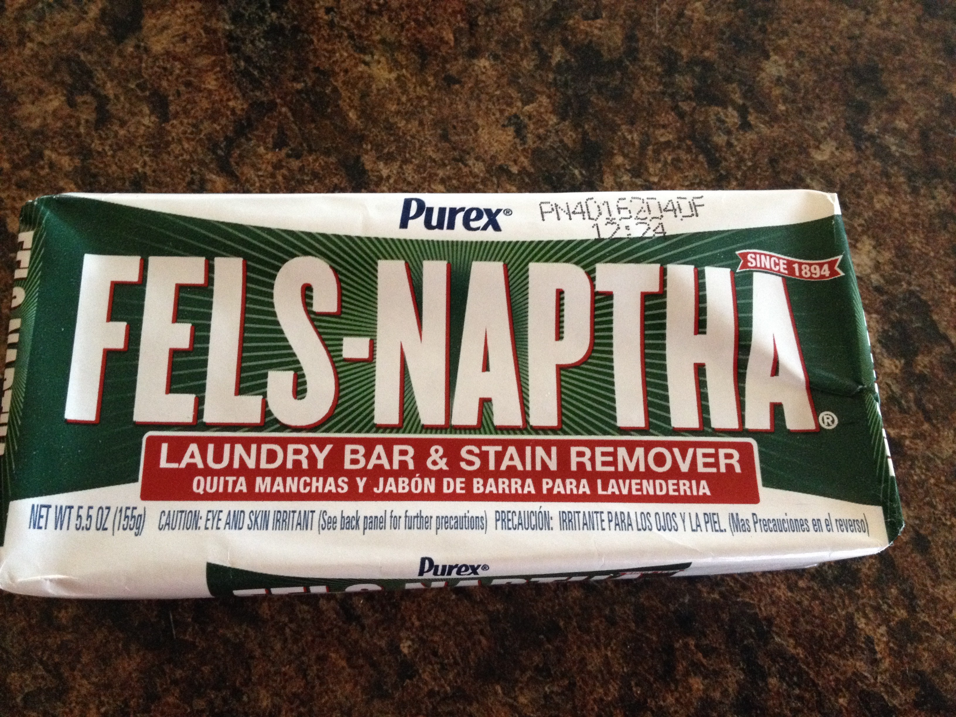 Fels Naptha (you can use any bar soap you want, but I really like this. It seems to be the best at stain-removing).