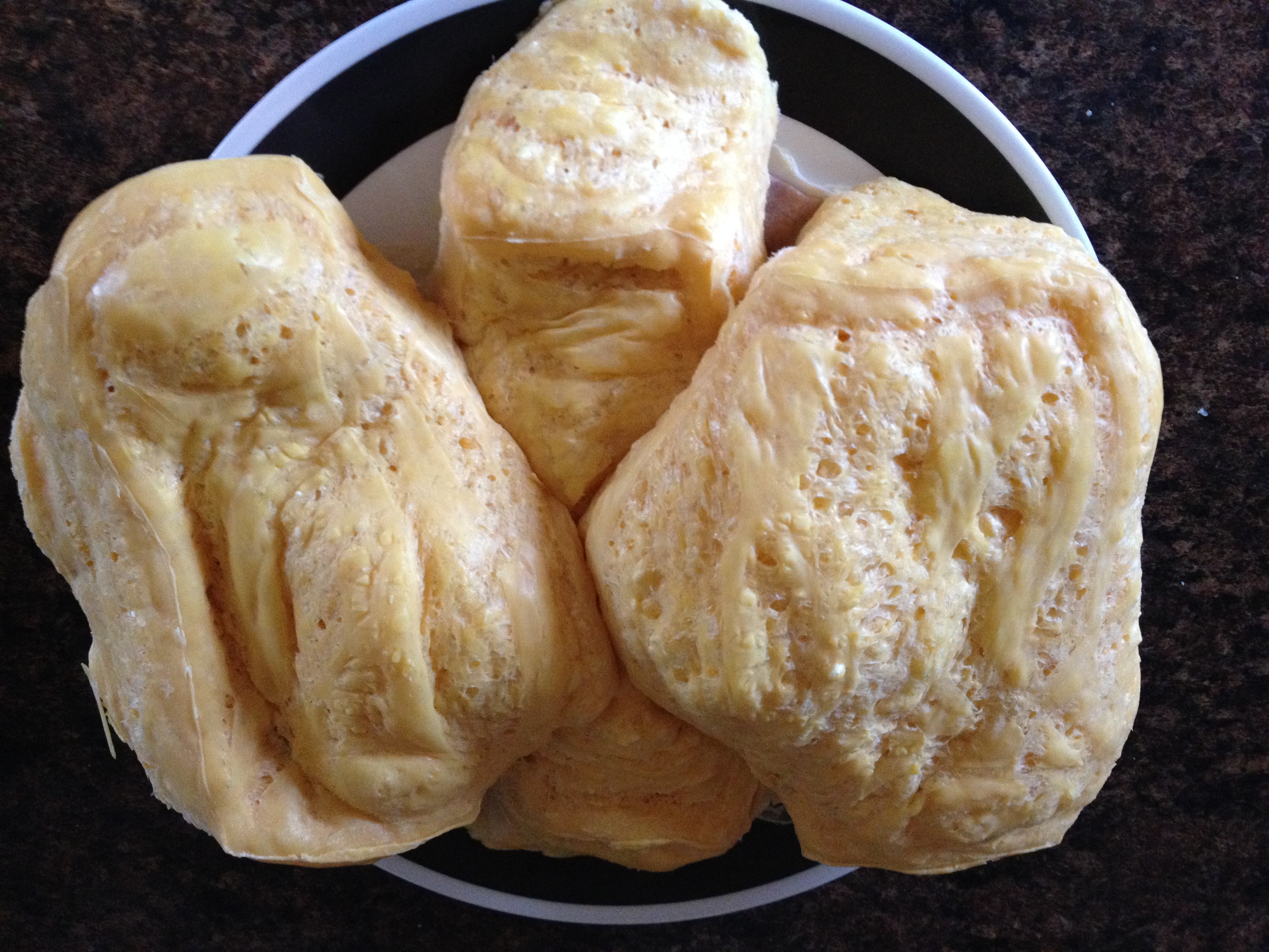 To make, you take the Fels Naptha soap, unwrap it and place it on a microwave-safe plate. -This is where this recipe differs from most. Place the soap in the microwave and cook until it puffs up like a marshmallow. Take this slowly, you don’t want to scorch your soap. For 1 bar, in my microwave, I start out cooking for 90 seconds and cook additional 30 seconds as needed. For 2-3 bars, start out cooking for 3 minutes, then 30 seconds added on. Once it is all puffy, take the plate out of the microwave and let cool completely. **Note, the soap and plate will be hot. Also, if you are sensitive to fragrances like me, you will want to have a little ventilation as the smell of the hot soap can be strong. I solve this problem by opening a nearby window and letting the soap cool outside.