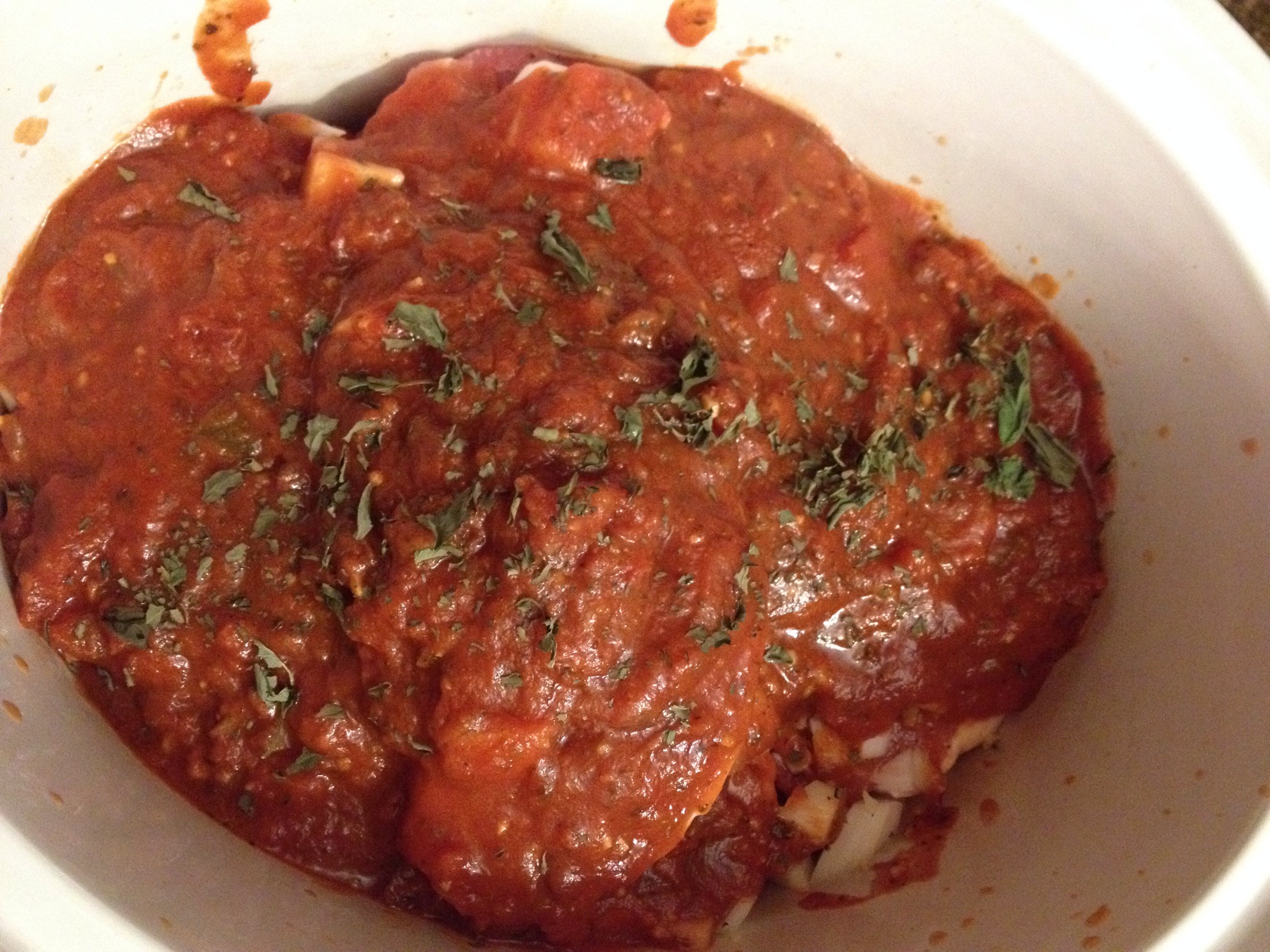 1. Place pork chops, salt, pepper, onions, garlic and pasta sauce in 4-quart slow cooker.