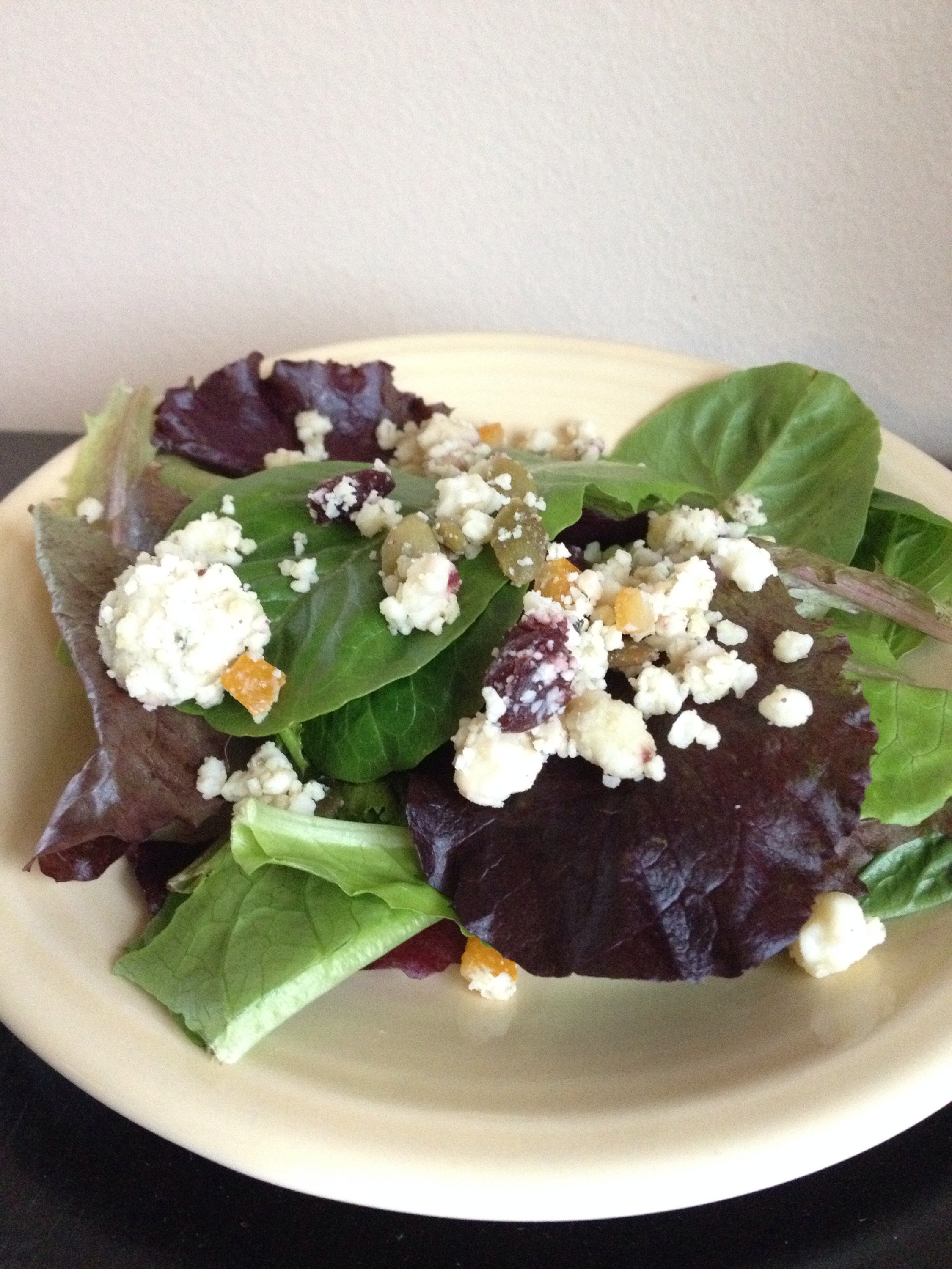 There’s a blue cheese (with cranberries, orange peels and pumpkin seeds) and a feta (with candied lemon peel, apricots and pumpkin seeds). It is the perfect blend and a simple solution to my salad dilemma.